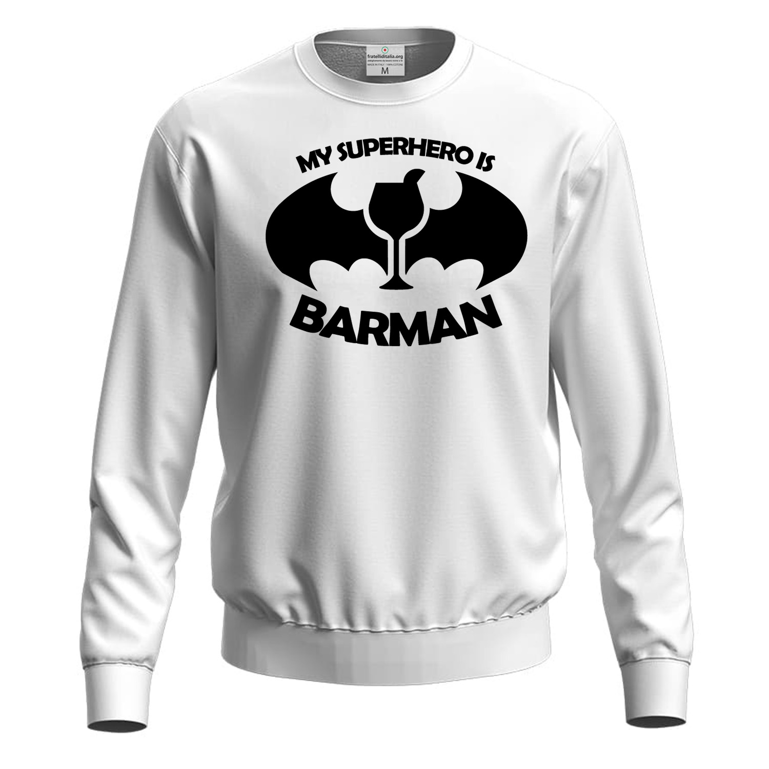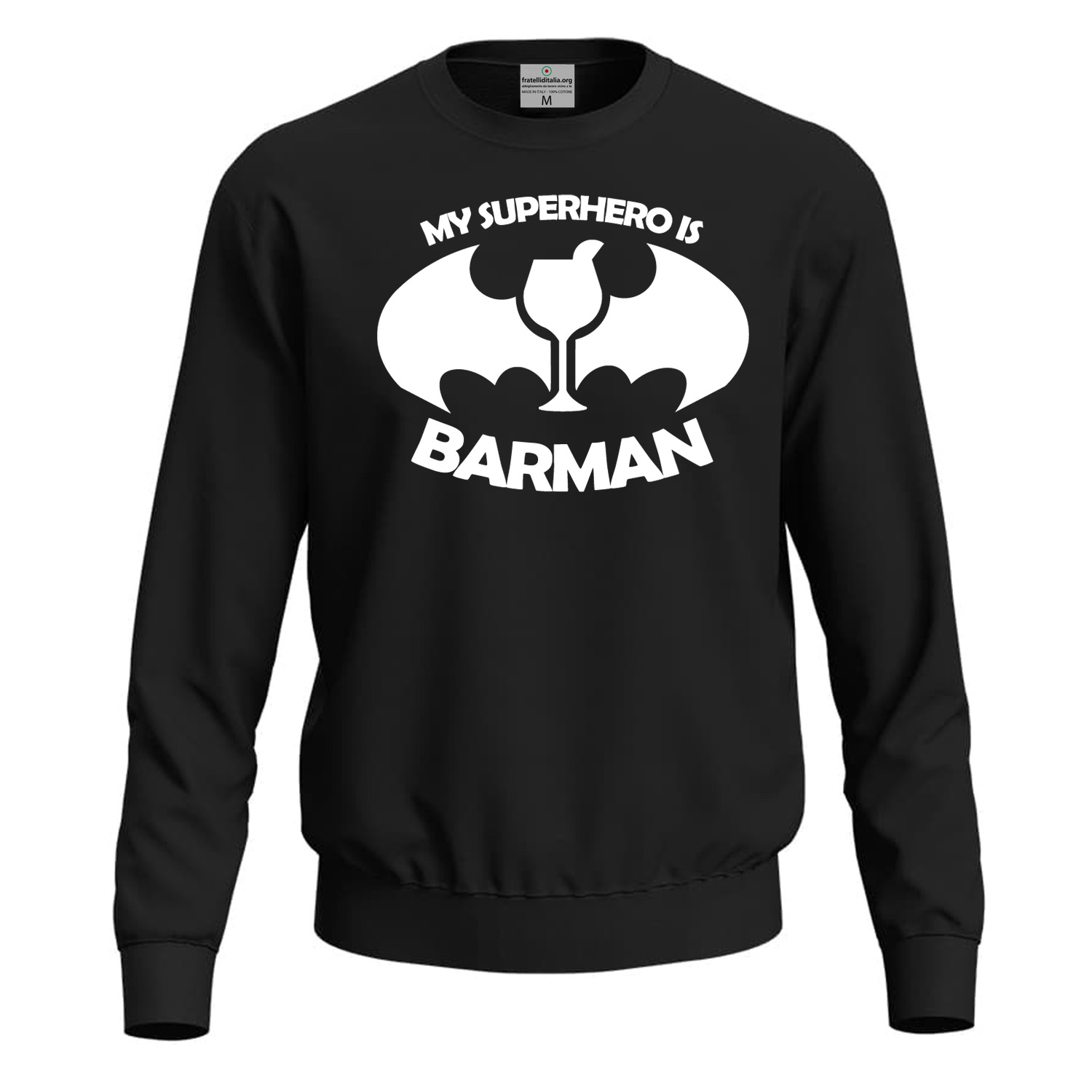 Felpa BARMAN unisex, dallo stile classico e taglio regular, ideale per baristi e appassionati del settore. Realizzata in morbido tessuto interno garzato, con un peso di 280 g/m², e dotata di polsini e orlo elasticizzati per un comfort ottimale. Disponibile in diverse taglie (XS-3XL) e colori, con etichetta di taglia e cura staccabile. La stampa in DTF garantisce un design duraturo e di alta qualità. Lavabile in lavatrice a 30°C; si consiglia di girarla al rovescio per mantenere intatti i dettagli della stampa. Spedizione entro 24 ore e consegna in 2-4 giorni lavorativi.