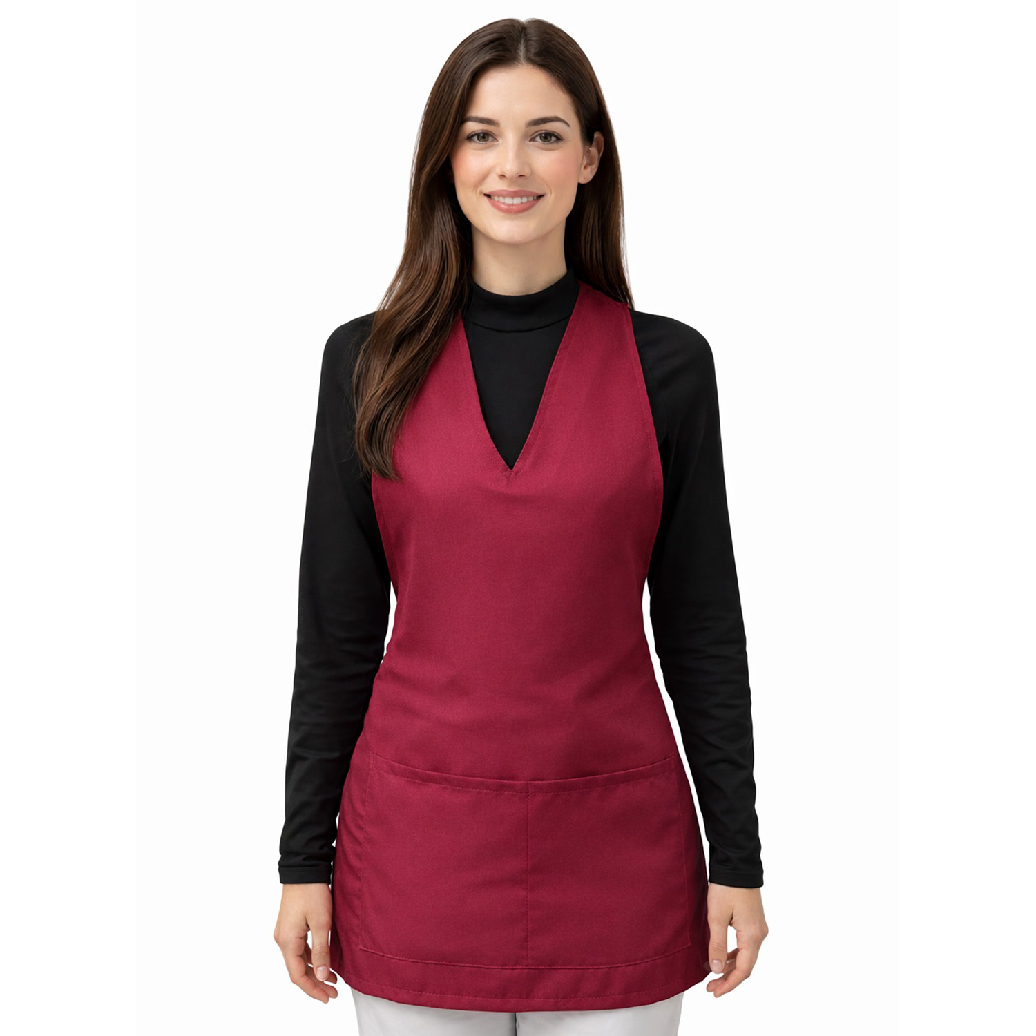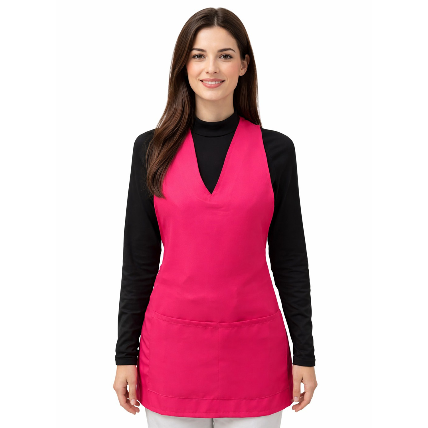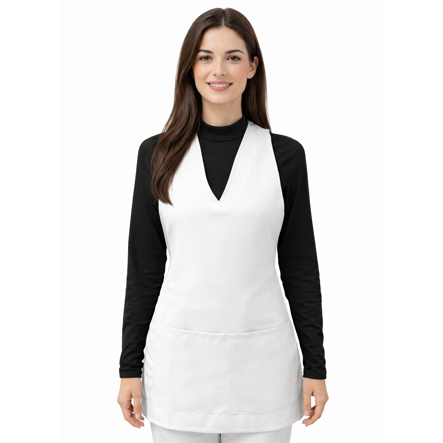 Gilet poncho da donna professionale realizzato in tessuto Dacron 100% poliestere, leggero, resistente e facile da mantenere. Il design senza maniche garantisce massima libertà di movimento, mentre i laccetti posteriori regolabili permettono una vestibilità adattabile e confortevole. Dotato di ampia tasca frontale per la massima praticità durante il lavoro. Ideale per estetiste, parrucchiere, personale sanitario e attività a contatto con il pubblico. Personalizzabile con stampa DTF di alta qualità. Lavabile in lavatrice a 30°C.