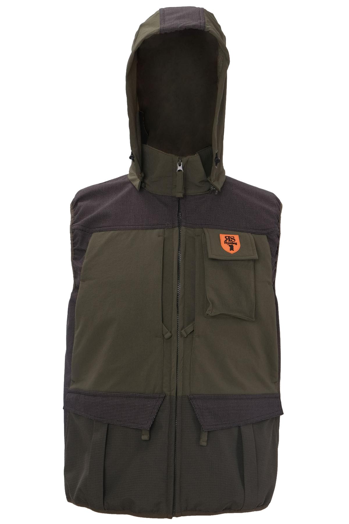 ✅ Gilet in colore verde, quattro grandi tasche con zip, due laterali e due centrali.
