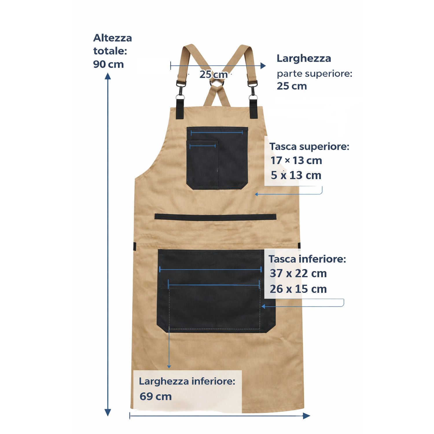 Grembiule da Lavoro Professionale con Tasche in Poliestere Resistente con Spallacci Incrociati per Cucina, Bar e Ristorazione