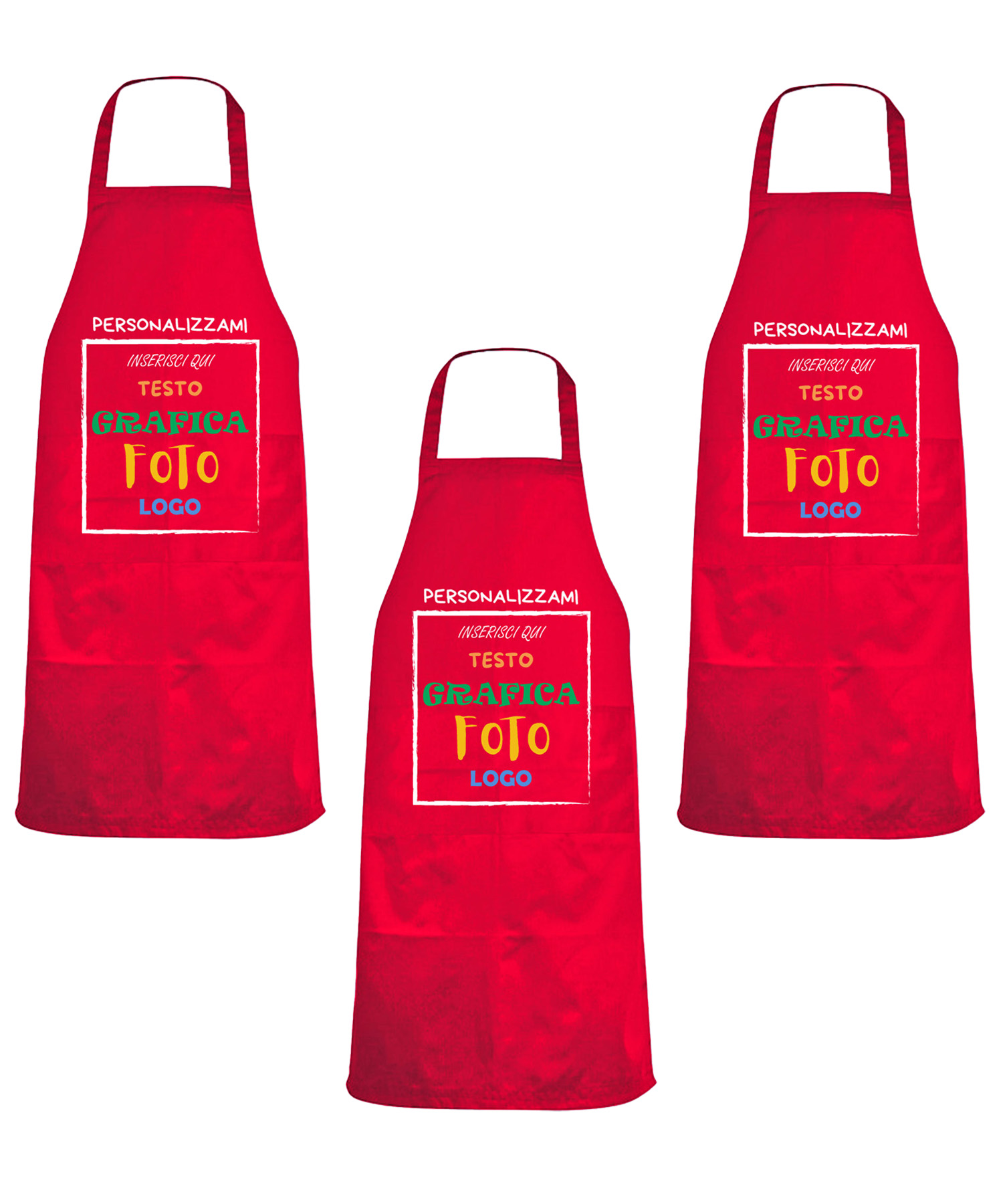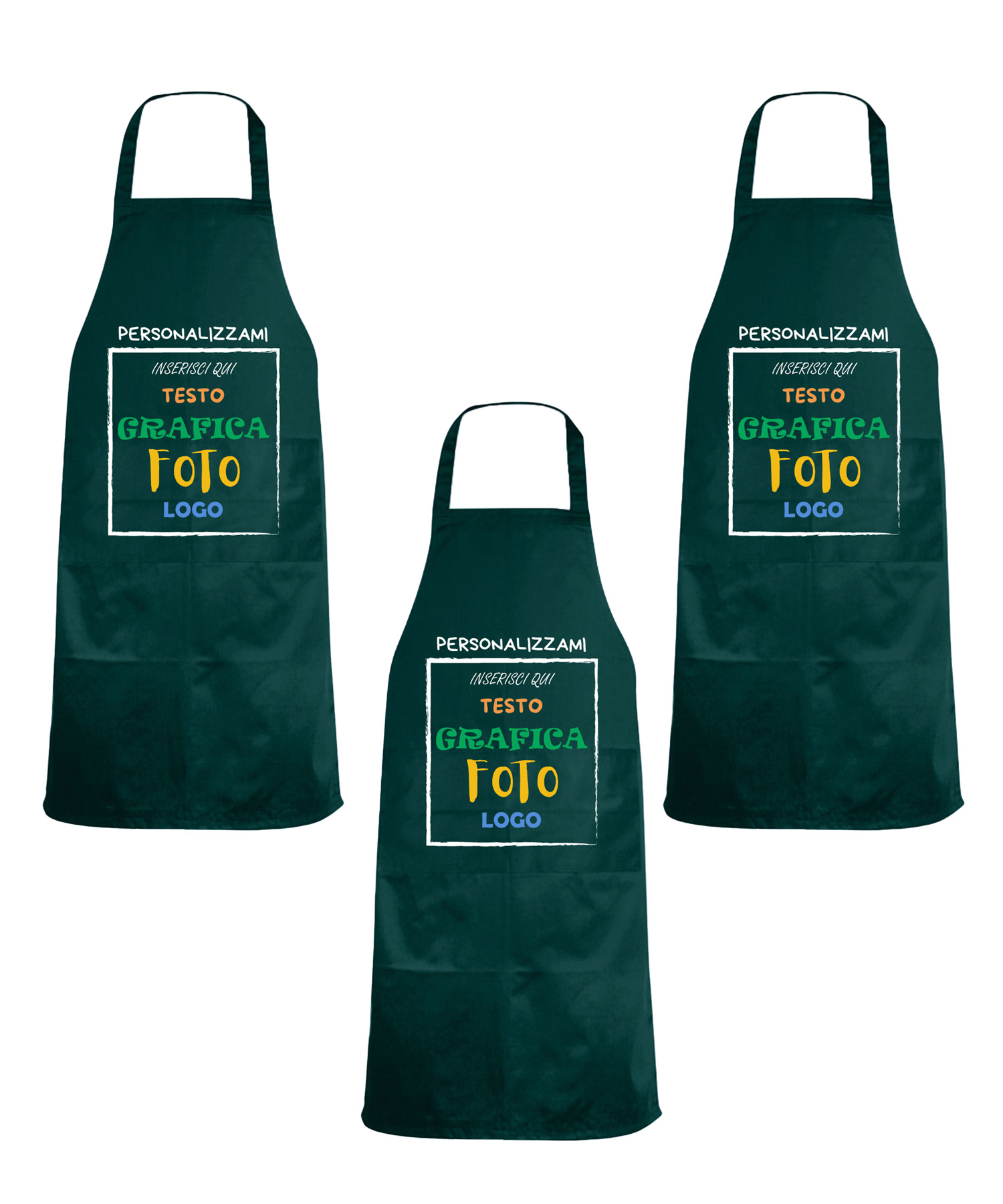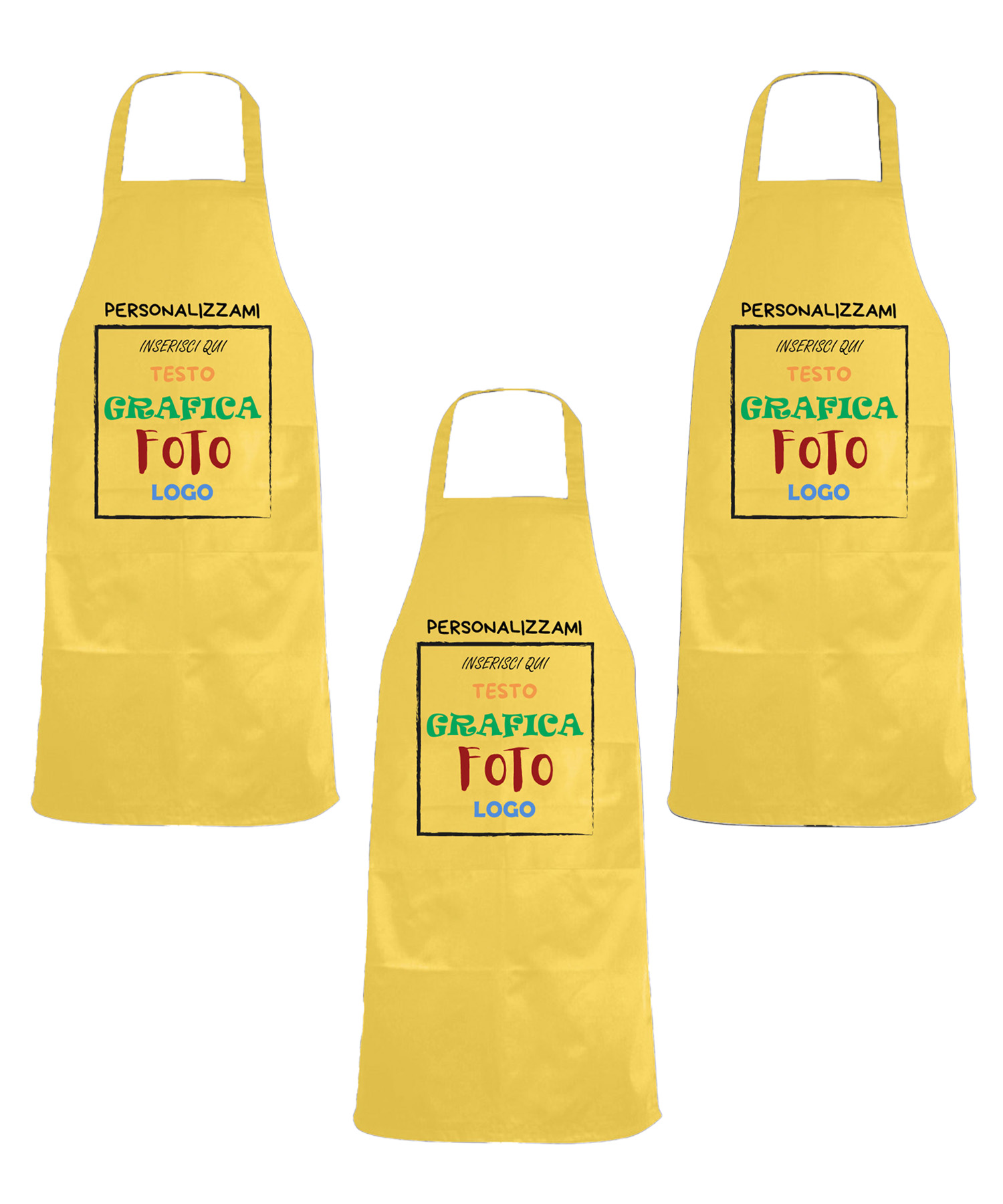 KIT 3 grembiuli paravanti con tasca PERSONALIZZAZIONE INCLUSA Bianco - Nero - Rosso - Verde - Giallo Misura 82 X 60