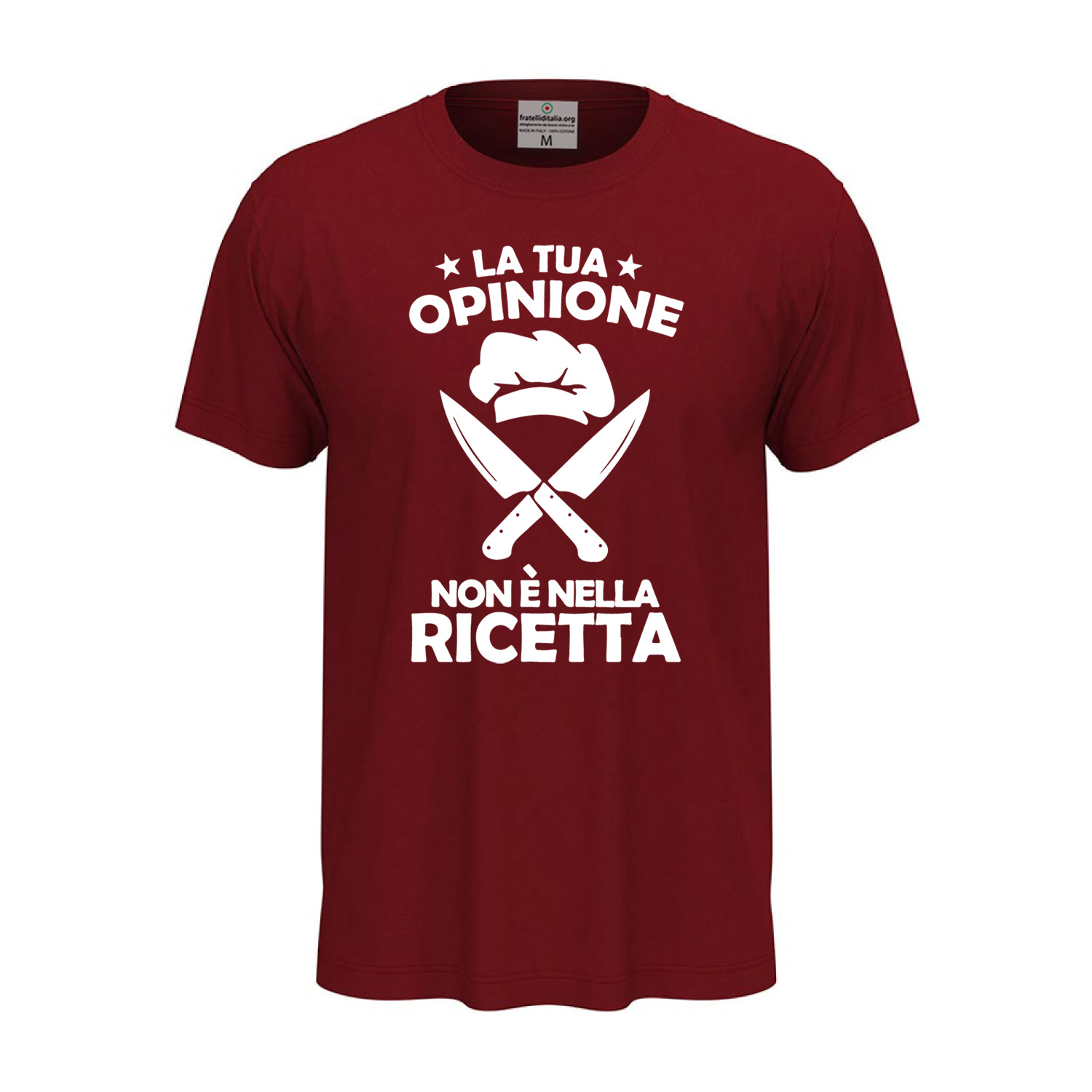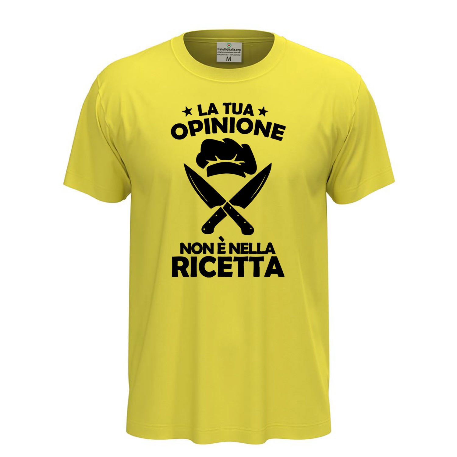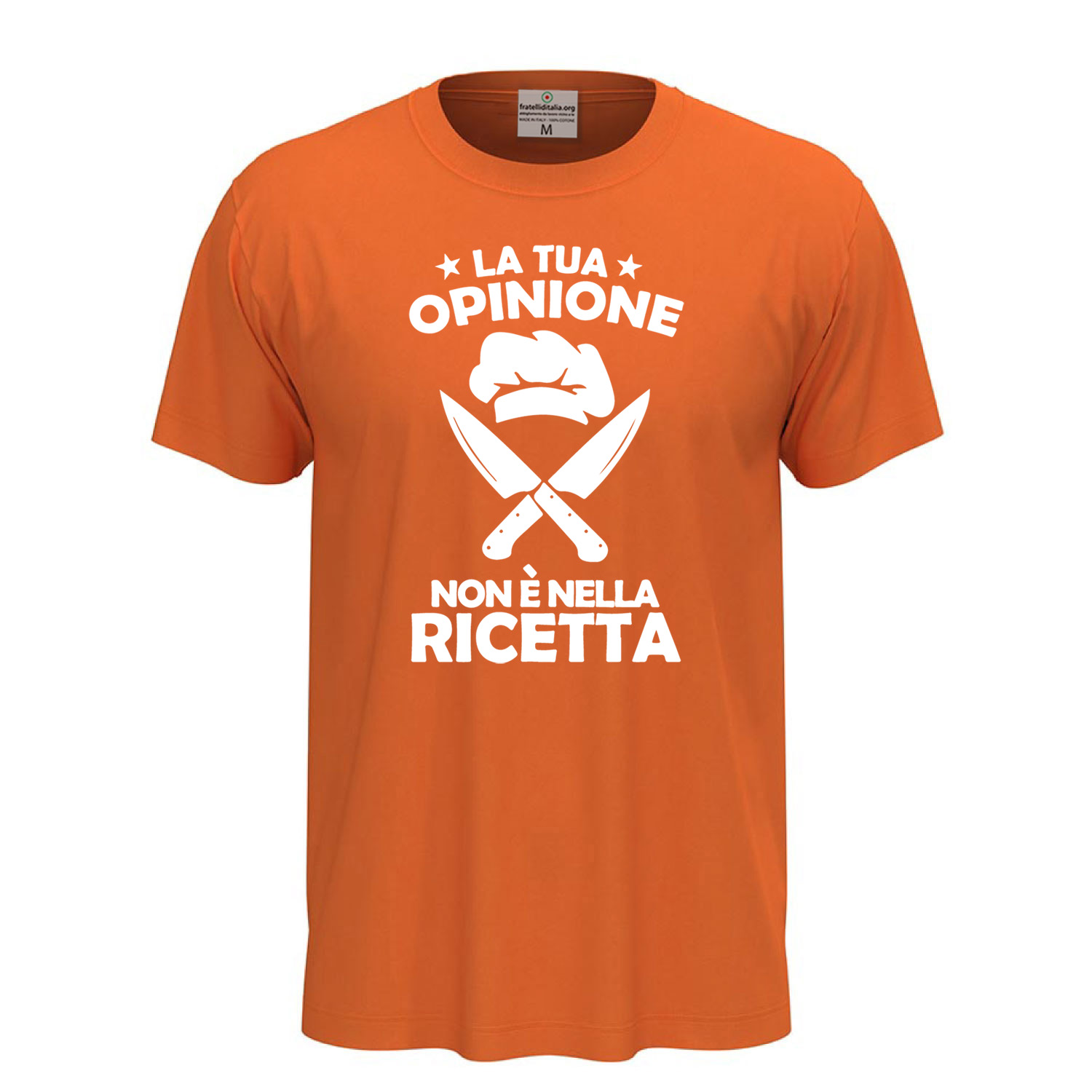 T-shirt classica a manica corta con stampa DTF "LA TUA OPINIONE NON è NELLA RICETTA". con tessuto in jersey semplice e un peso di 155 g/m². Perfetta per il massimo comfort grazie all’etichetta rimovibile e disponibile in taglie dalla XS alla 5XL. La stampa digitale DTF offre una qualità eccellente con dettagli nitidi e durevoli. Facile da mantenere, lavabile in lavatrice a 30°C (si consiglia il lavaggio al rovescio). Un’idea regalo simpatica e originale per ogni occasione.