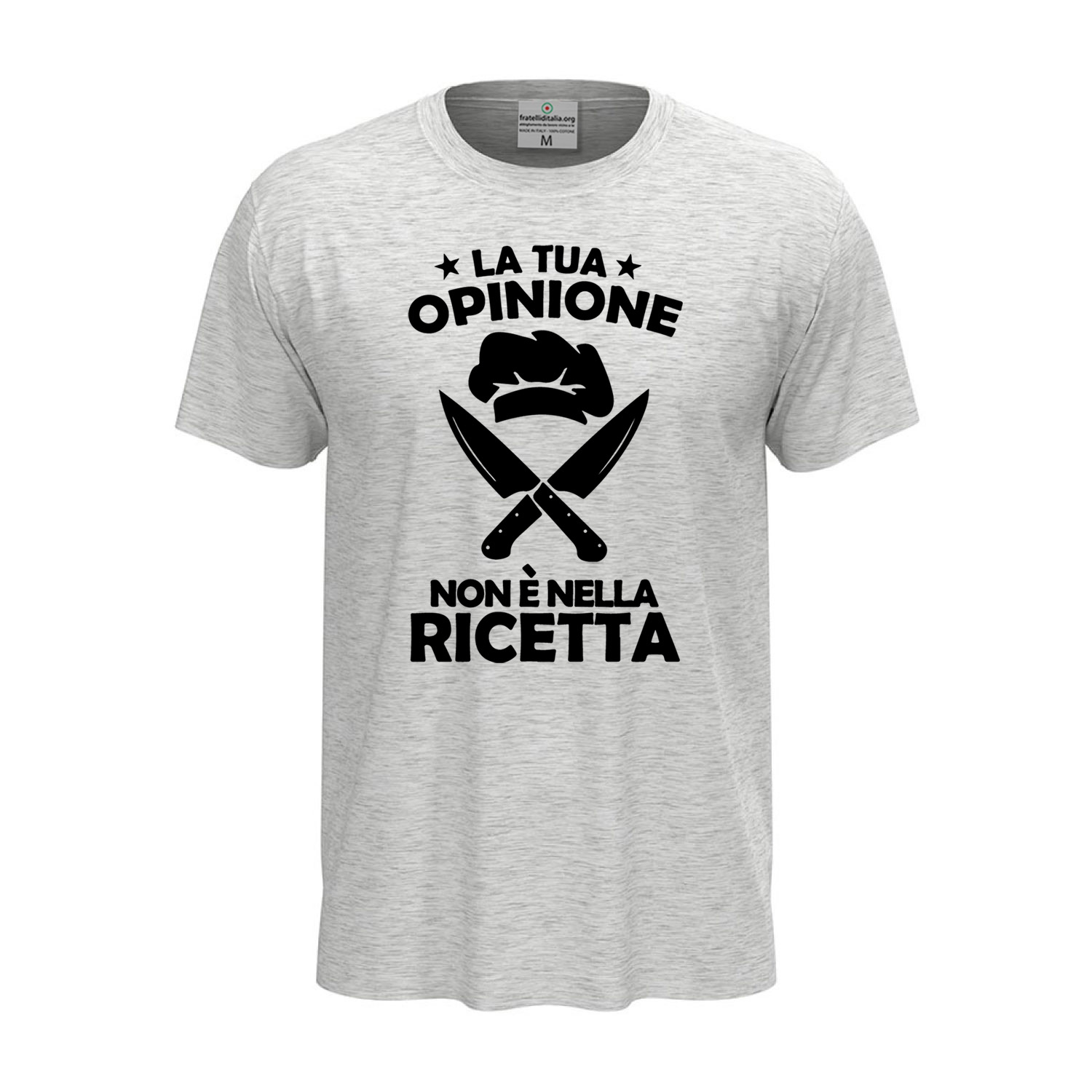 T-shirt classique à manches courtes avec impression DTF "VOTRE OPINION NE FAIT PAS PARTIE DES INGRÉDIENTS". Confectionné en 100% coton filé à l'anneau (85% coton et 15% viscose pour la variante GYH), avec un tissu en jersey simple et un poids de 155 g/m². Conçu pour un confort optimal grâce à une étiquette amovible, disponible dans les tailles XS à 5XL. L'impression numérique DTF de haute qualité garantit une durabilité et des détails précis. Facile d’entretien, lavable en machine à 30°C (lavage à l’envers recommandé). Une idée cadeau amusante et originale pour toutes les occasions.