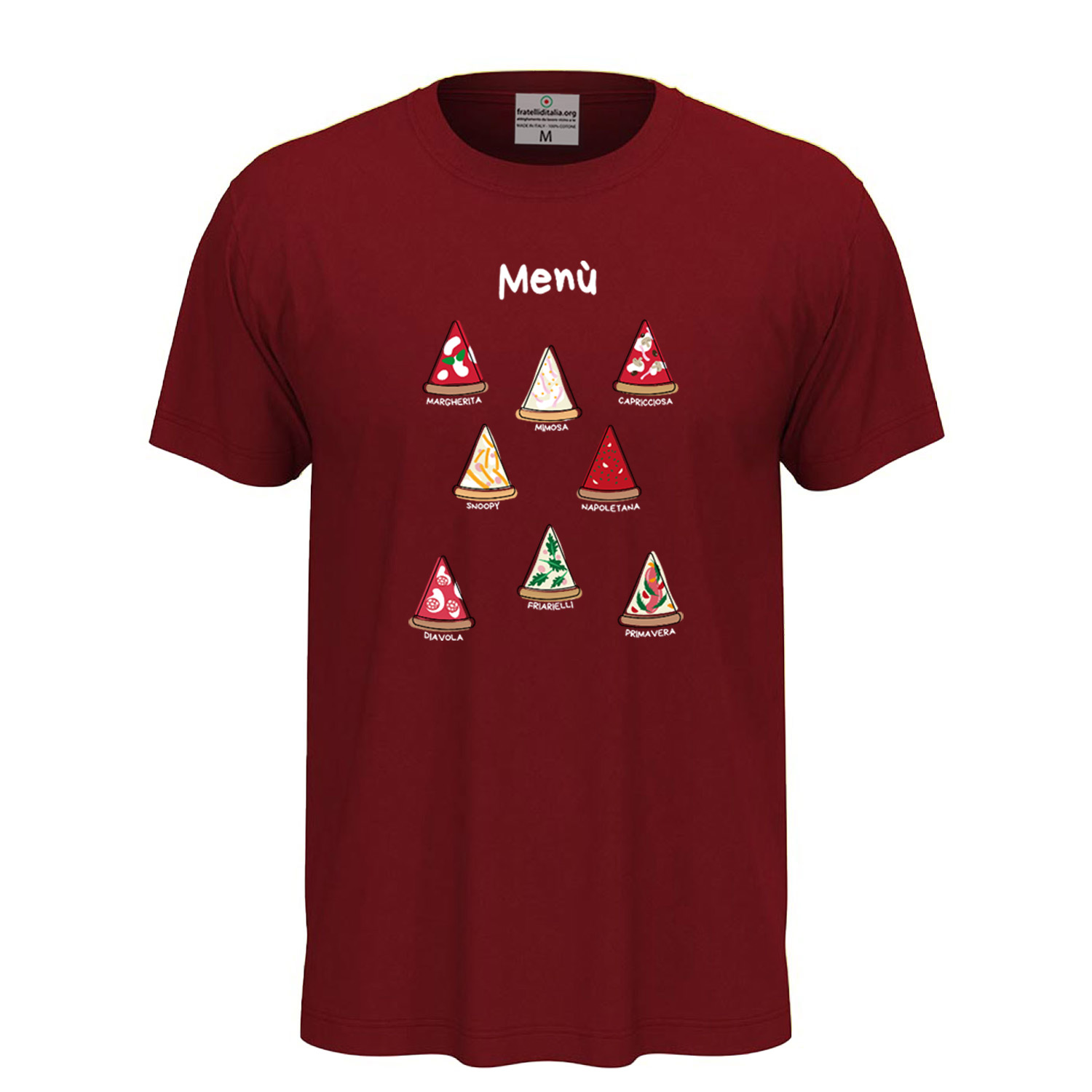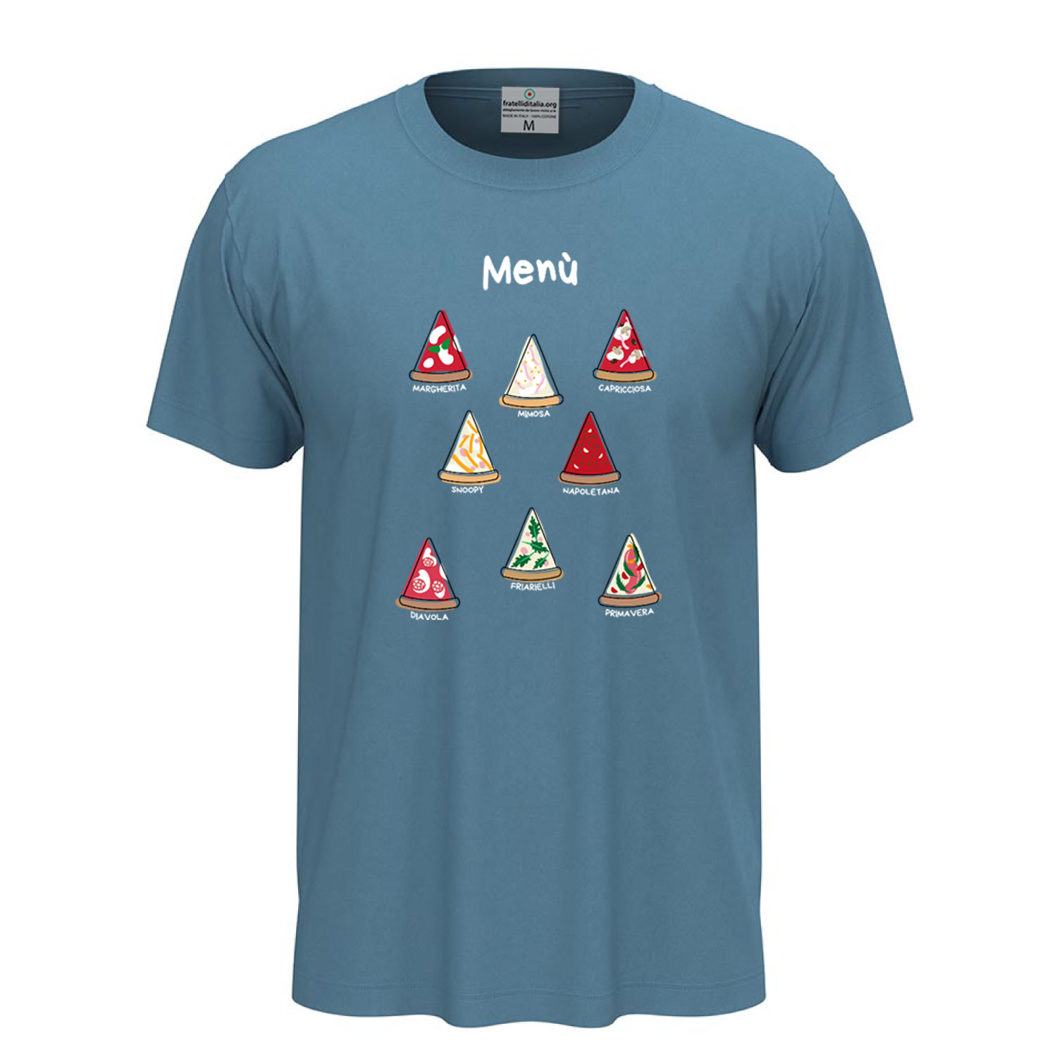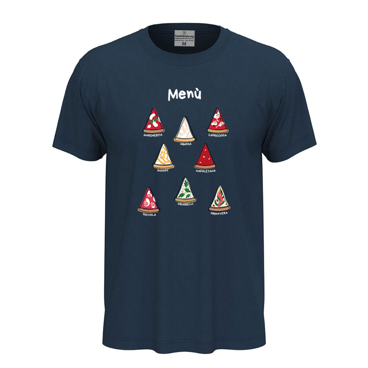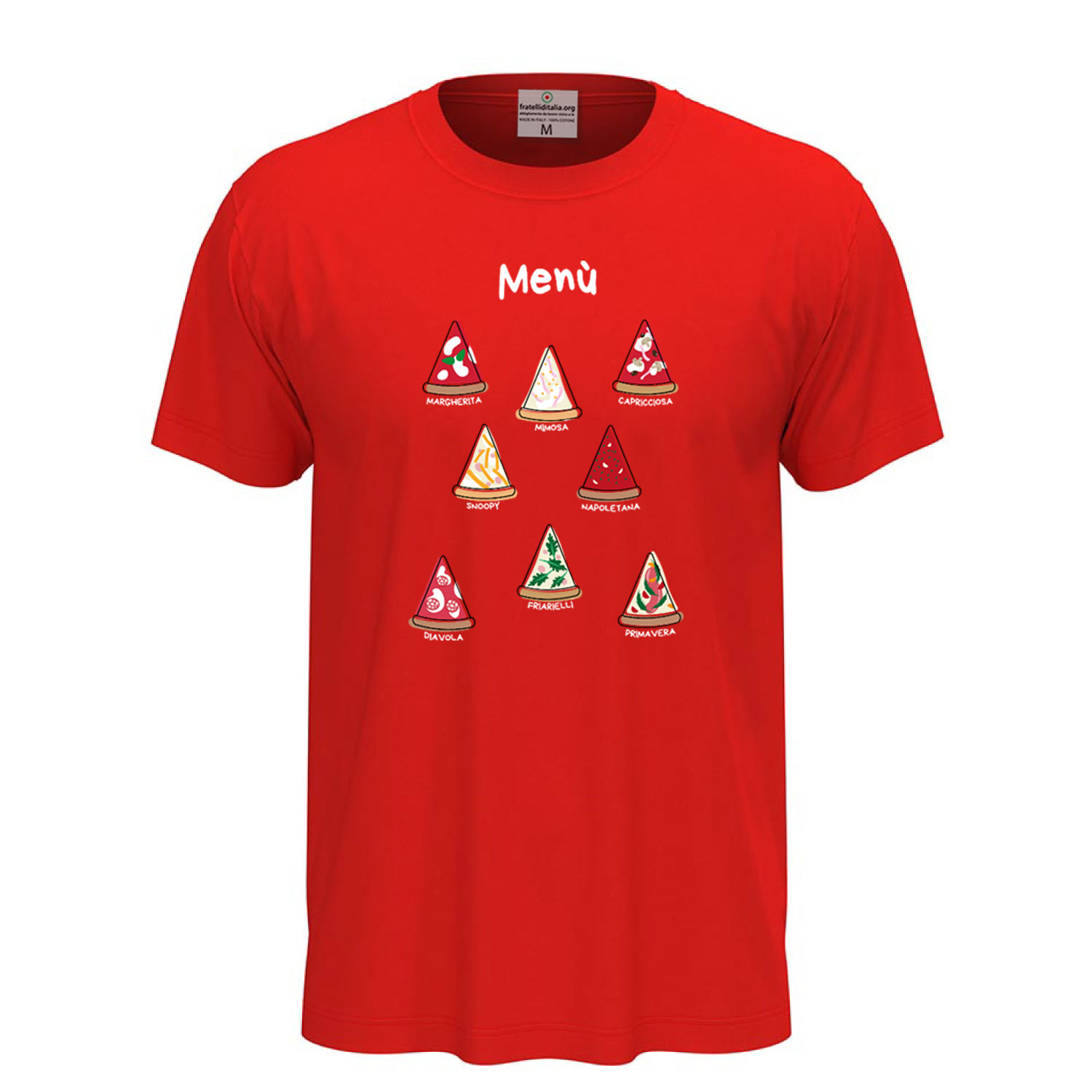 Unisex short-sleeve T-shirt with DTF digital print "Pizza Menu," designed for pizza lovers. Made from 100% ring-spun cotton (85% cotton and 15% viscose for the GYH variant) with lightweight 155 g/m² jersey fabric. Crafted for ultimate comfort with a removable label. Available in sizes XS to 5XL. High-quality DTF print ensures sharp and long-lasting details. Machine washable at 30°C; turning it inside out is recommended to preserve the print.
